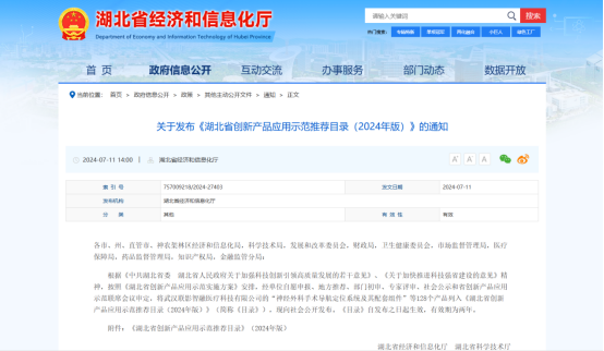 近日,由湖北省經濟和信息化廳、湖北省科學技術廳、湖北省發展和改革委員會等單位評審通過的《2024年度湖北省創新產品應用示范推薦目錄》公布。